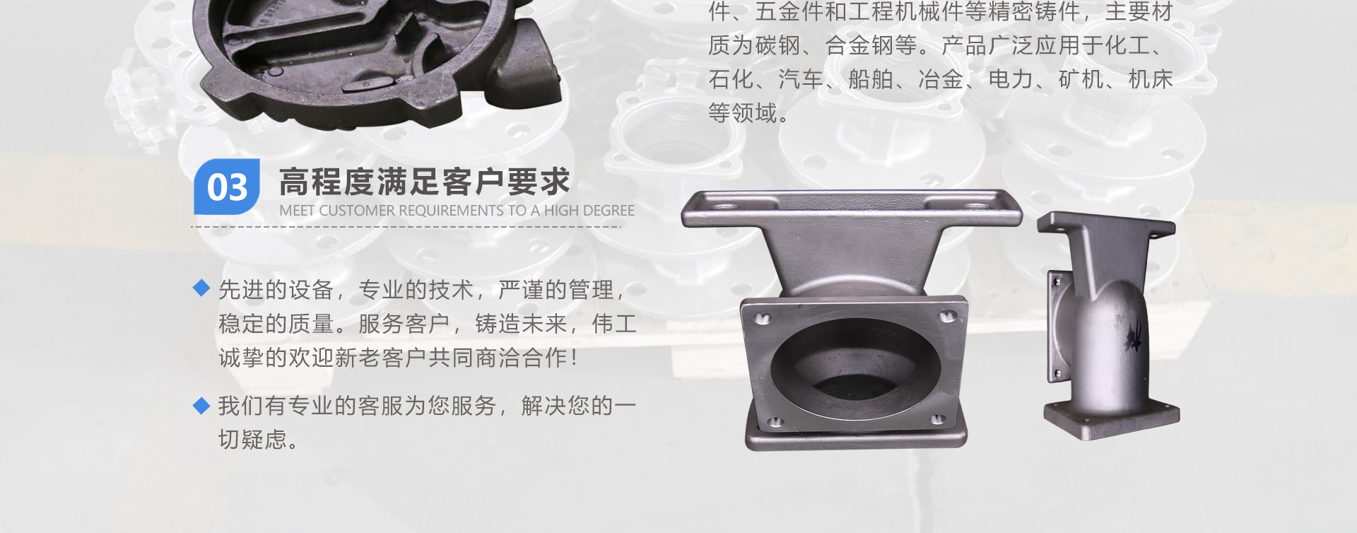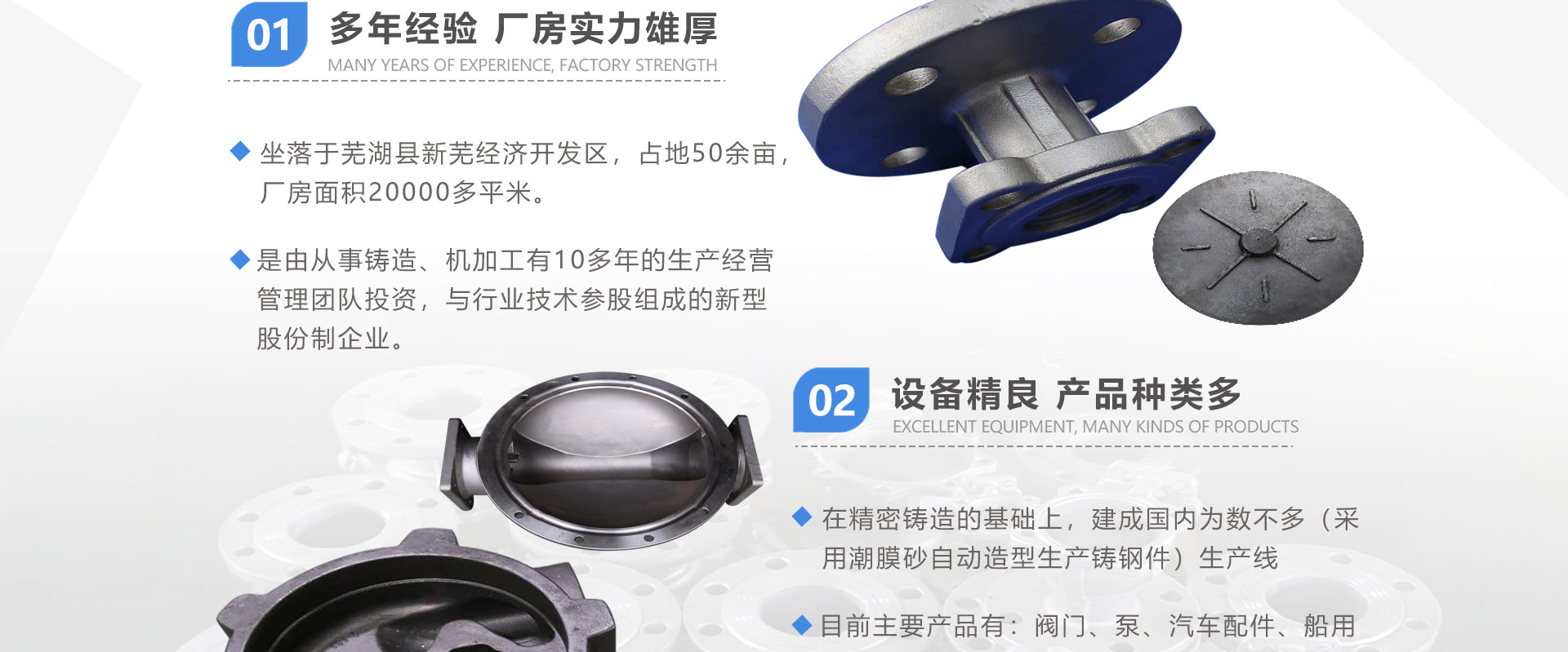 安徽偉工機(jī)械科技有限公司,坐落于安徽蕪湖新蕪經(jīng)濟(jì)開發(fā)區(qū),是一家専業(yè)從事鑄造產(chǎn)品設(shè)計(jì)、研發(fā)、生產(chǎn)、銷售于一體的企業(yè),公司為客戶的產(chǎn)品提供多樣的技術(shù)支持與設(shè)計(jì),公司主要鑄造技術(shù)有潮模砂鑄造、硅溶膠精鑄工藝。主要產(chǎn)品有:不銹鋼閥門配件、泵閥配件、汽車配件、工業(yè)管道配件、工程機(jī)械配件、汽車配件等。材質(zhì)為:低合金鋼、304、316、316L、鉻鉬鋼、哈氏合金、碳鋼、雙相鋼等。公司已先后通過ISO9001和TS16949等多種體系審核,以完備的管理手段和齊全的檢測(cè)設(shè)備滿足客戶需求,進(jìn)的設(shè)備,専業(yè)的技術(shù),嚴(yán)謹(jǐn)?shù)墓芾恚€(wěn)定的質(zhì)量。服務(wù)客戶,鑄造未來,偉工誠(chéng)摯的歡迎新老客戶共同商洽合作
